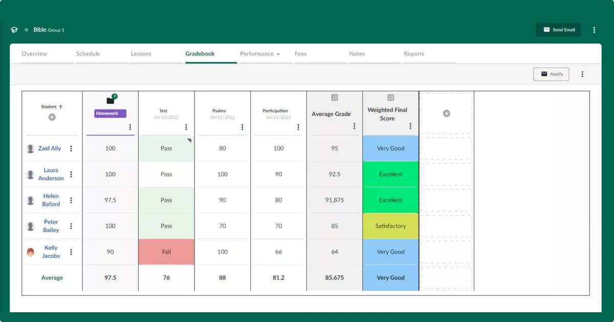 Create your time schedules and share them with teachers, students and parents or guardians. Perform last minute changes with automated notifications to students, teachers and parents. You no longer have to worry about time consuming long processes to update every party involved. Email communication is also available.