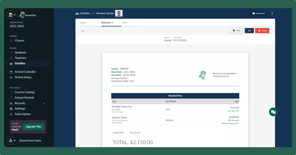Keep tabs on your finances, including special agreements, custom installments and outstanding payments, with regard to tuition fees. Send email notifications to parents and guardians in time and stay one step ahead of schedule, for peace of mind.