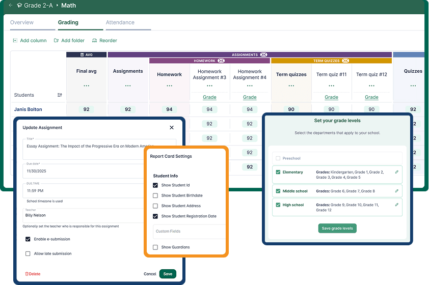 - Use gradebook templates or customize from scratch