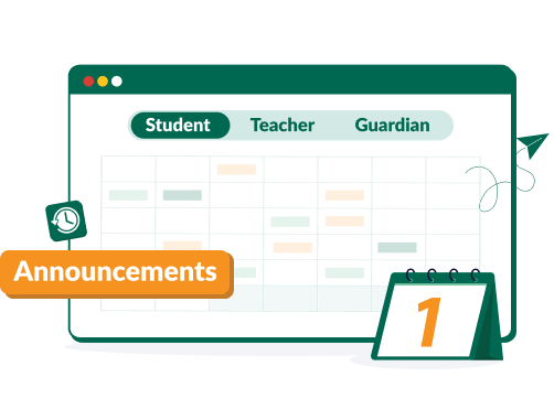 Yes, announcements are visible inside the student, guardian, and teacher portals. Admins can use them to share school-wide updates, news, or calendar events.