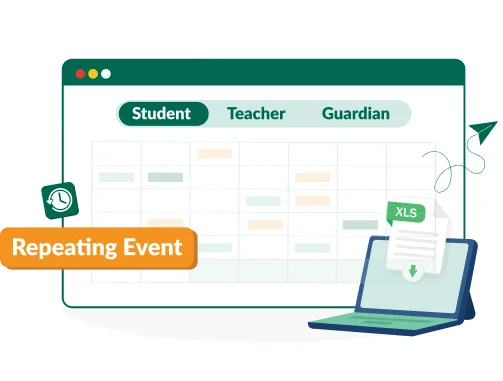 Design and manage recurring lessons, one-off events, and classroom bookings, all in one centralized calendar that teachers, students and guardians can rely on.