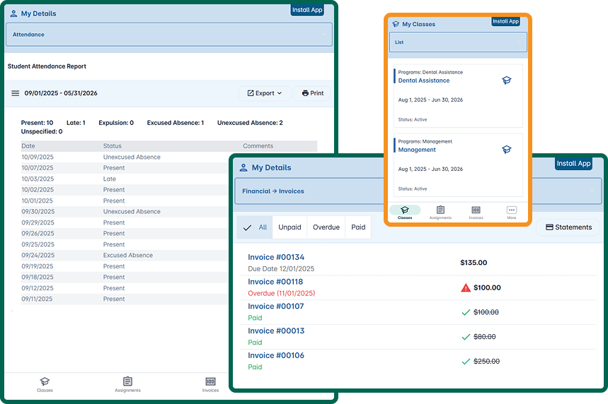 Stakeholders see updated schedules, grades, invoices, and attendance, the moment they’re published.
